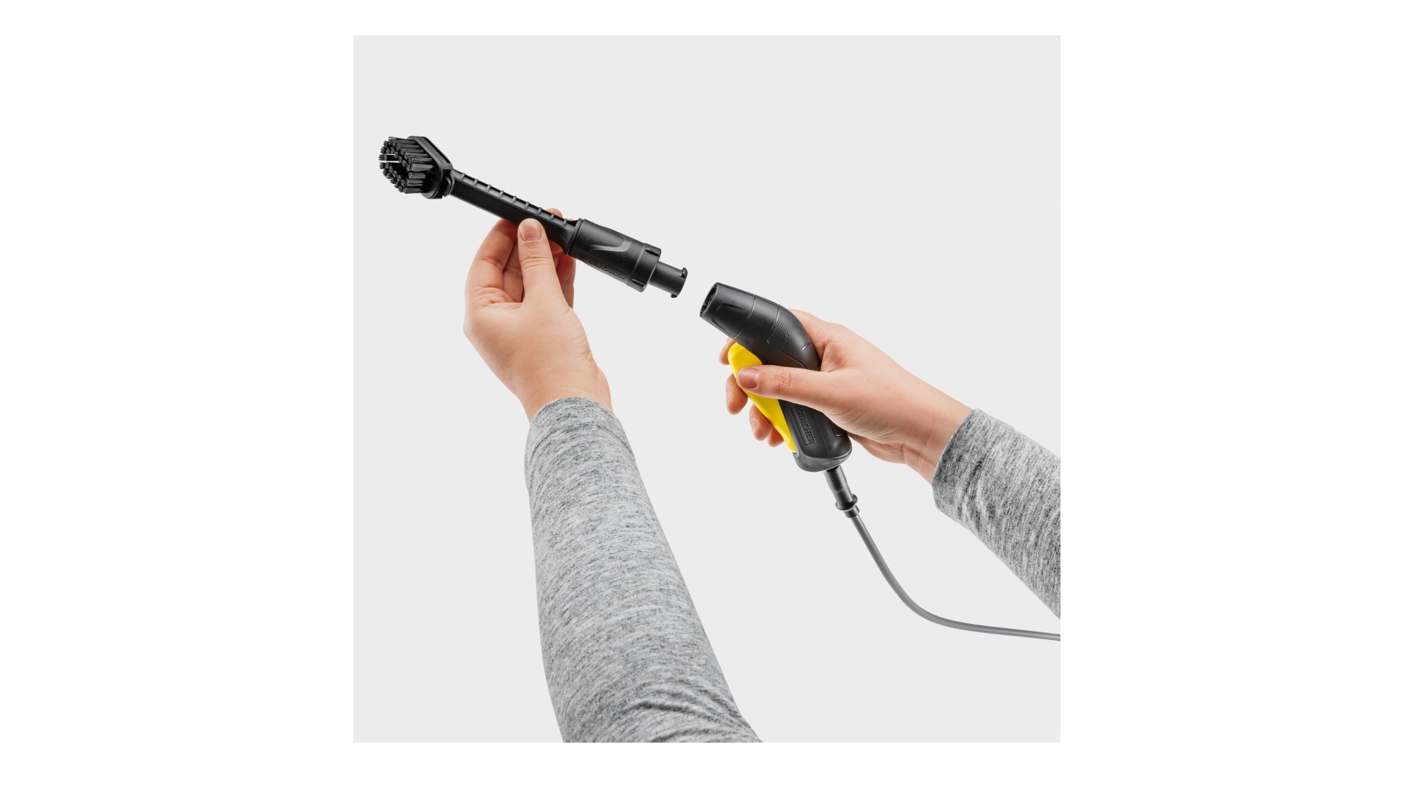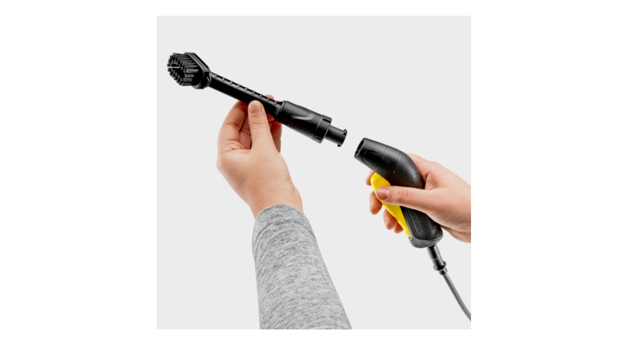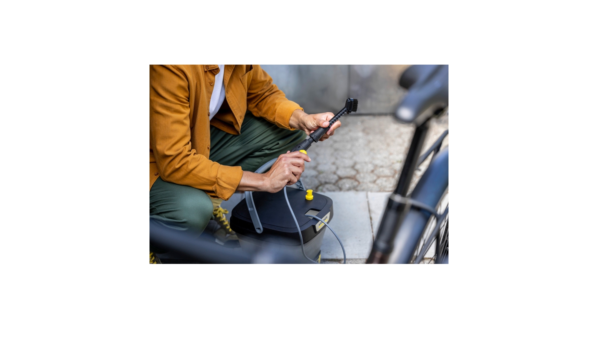 La brosse de nettoyage de précision pour OC 3 et OC 4 KÄRCHER est l’accessoire idéal pour enlever la saleté dans les recoins, fentes et zones étroites où le jet seul ne suffit pas : cadre et pivots de vélo, jantes de voiture, joints, charnières, etc. Elle combine l’action d’un jet d’eau plat en éventail et le pouvoir mécanique des poils, pour décoller et rincer la saleté en un seul geste.