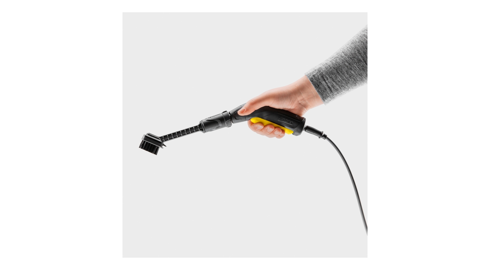 Montée directement sur le pistolet des nettoyeurs mobiles OC 3 et OC 4, elle permet une utilisation à une main tout en gardant l’autre libre pour tenir ou manipuler l’équipement. L’eau ne s’écoule que lorsque la gâchette est actionnée, ce qui optimise la consommation d’eau et préserve la batterie du nettoyeur. La tête de brosse est amovible et remplaçable, pour garder un accessoire propre et efficace sur la durée.