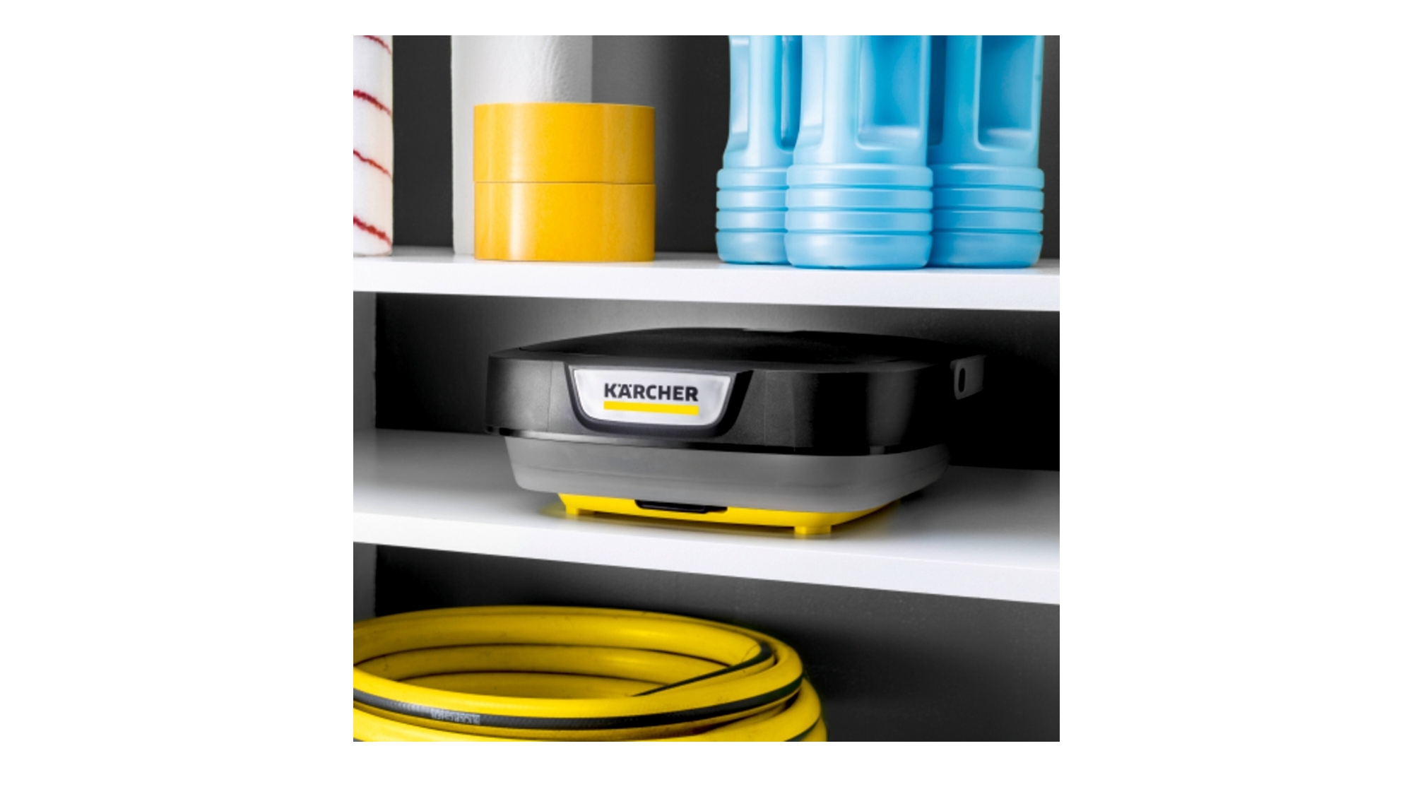 Design compact avec rangement du tuyau et de la poignée sous le réservoir, mise en route rapide : on remplit, on allume, on rince.