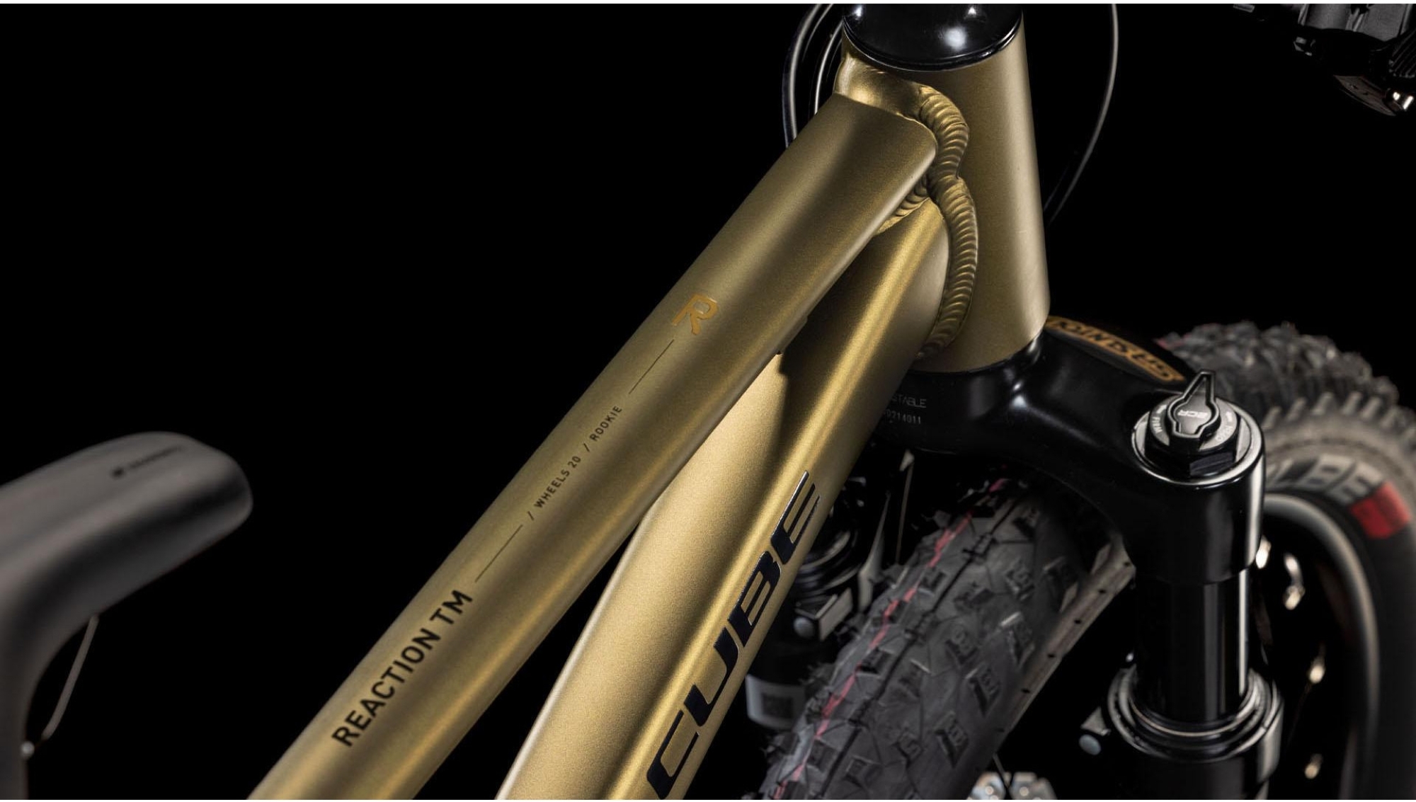 Le Reaction 200 TM reprend le cadre aluminium Aluminium Lite 6061 des modèles adultes, adapté aux enfants mesurant environ 111 à 124 cm. La fourche SR Suntour Raidon 34 (50 mm), spécialement réglée pour les petits gabarits, apporte confort, grip et contrôle en terrain cassant.