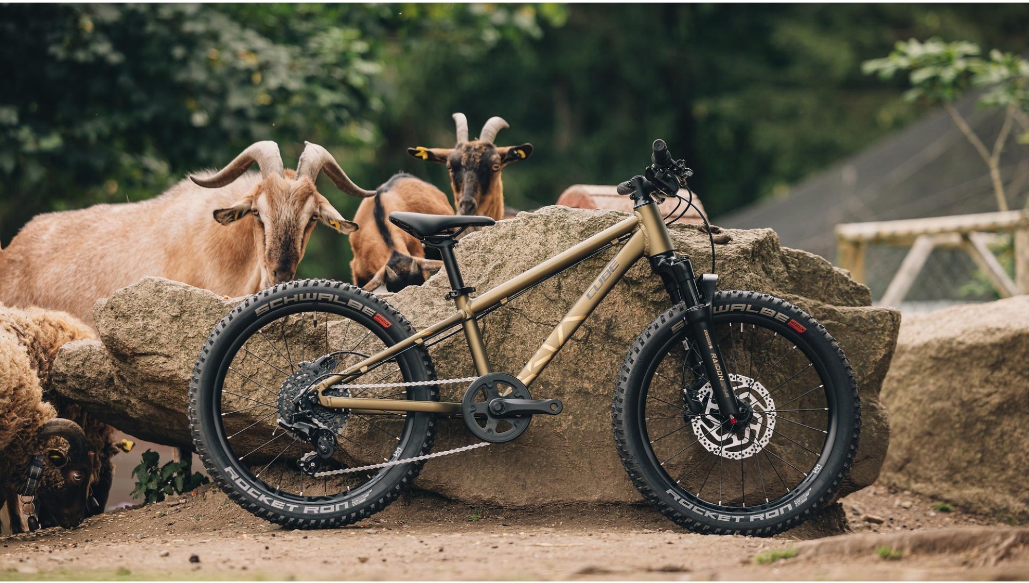 Côté sécurité, il reçoit les mêmes freins à disque hydrauliques Shimano BR-MT200 (disques 180/160 mm) que certains VTT adultes de la marque, pour un freinage puissant et facile à doser, même avec de petites mains. La transmission Microshift Acolyte 1×8 (plateau 32T, cassette 11–38T) offre une large plage de développements, simple à utiliser et protégée par un guide-chaîne. Les pneus Schwalbe Rocket Ron 20 x 2.25 Kevlar assurent une excellente accroche et un bon confort.